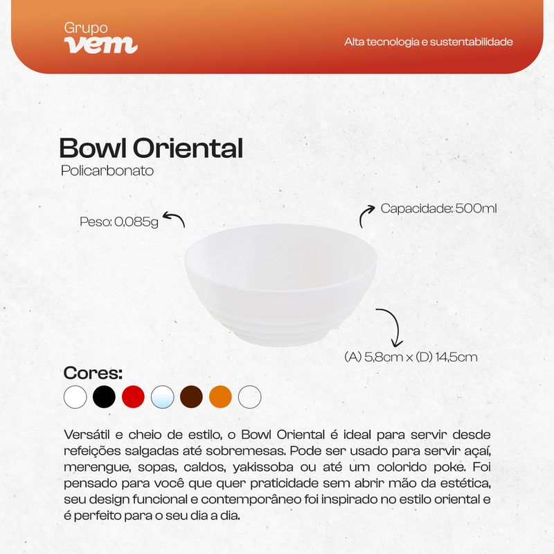 Bowl Oriental com 500ml da VEM é perfeito para servir desde refeições salgadas até sobremesas. Seu tamanho é ideal para
