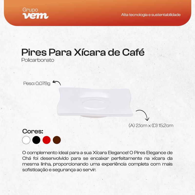 CONTÉM:1 Pires Para Xícara de Café Quadrada 14x14 Vermelho em Policarbonato