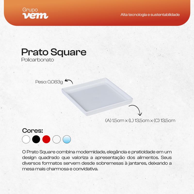 design moderno, elegância e funcionalidade para valorizar a apresentação dos seus pratos. Seu formato quadrado e tamanho compacto são ideais para