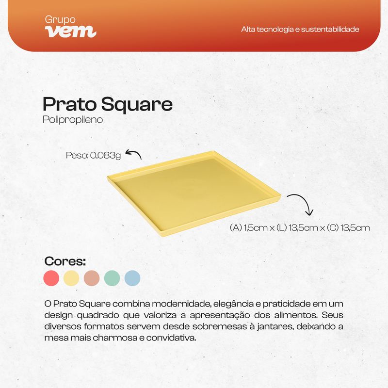 CONTÉM:1 Prato Square Quadrado 27x27 Amarelo em Polipropileno